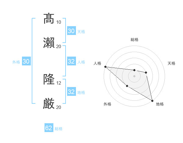 髙瀨 隆厳さんを姓名の画数から五運を鑑定