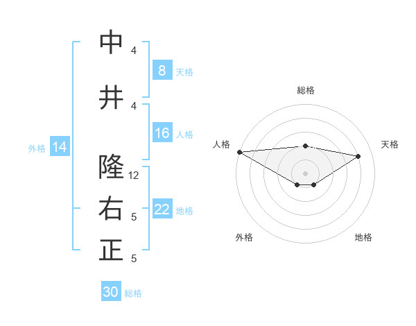 中井 隆右正さんを姓名の画数から五運を鑑定