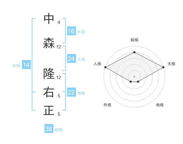 中森 隆右正さんの総格は38画の4点!
