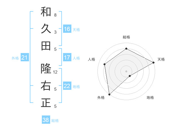 和久田 隆右正さんの天格は16画の5点!