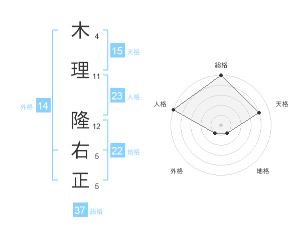 木理 隆右正さんを姓名の画数から五運を鑑定