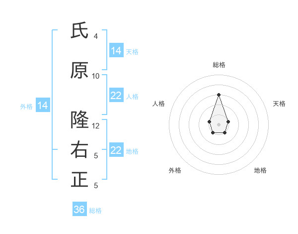 氏原 隆右正さんの地格は22画の1点!