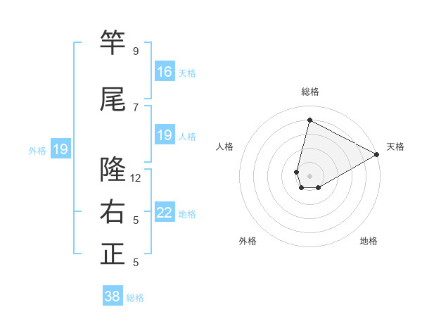 竿尾 隆右正さんを姓名の画数から五運を鑑定