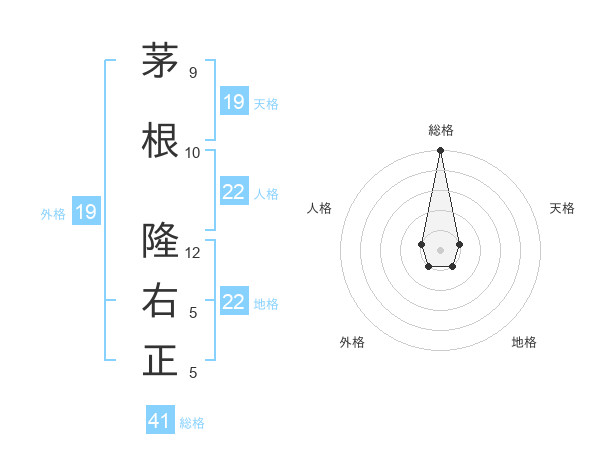 茅根 隆右正さんを姓名の画数から五運を鑑定