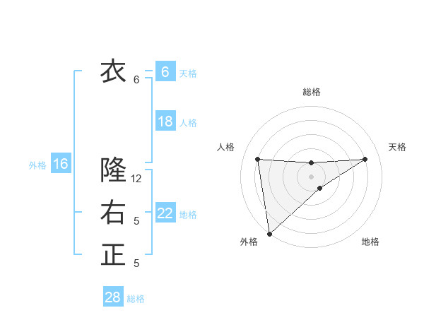 衣 隆右正さんを姓名の画数から五運を鑑定