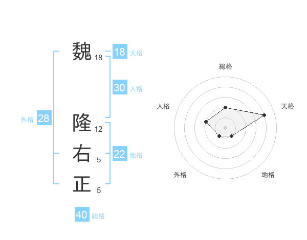 魏 隆右正さんの総格は40画の2点!