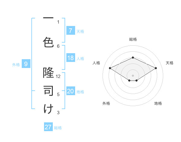 一色 隆司けさんの総格は27画の3点!