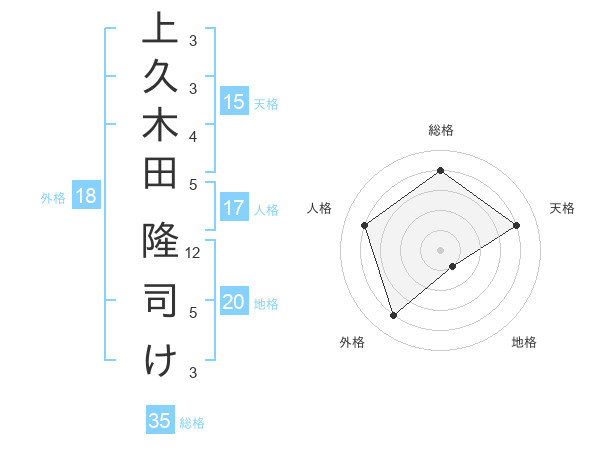 上久木田 隆司けさんの天格は15画の4点!