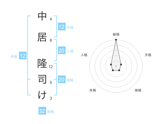 中居 隆司けさんを姓名の画数から五運を鑑定