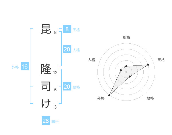 昆 隆司けさんを姓名の画数から五運を鑑定