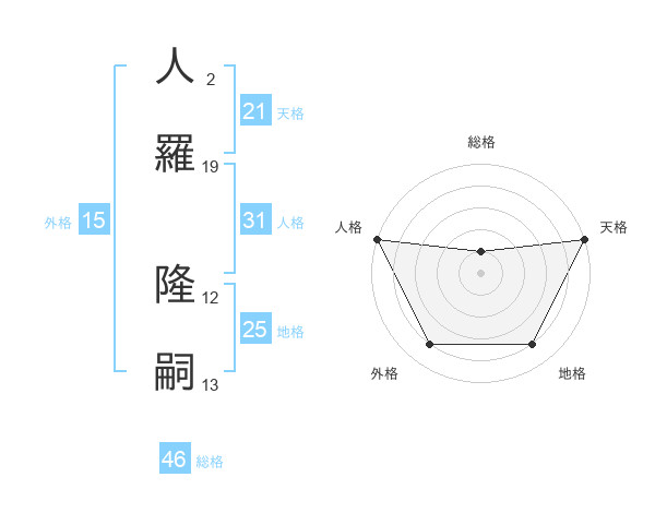 人羅 隆嗣さんを姓名の画数から五運を鑑定