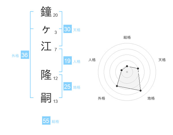 鐘ヶ江 隆嗣さんの総格は55画の1点!