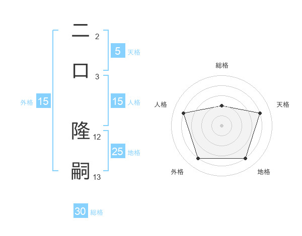 二口 隆嗣さんの地格は25画の4点!