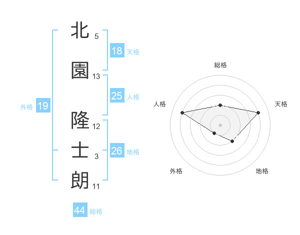 北園 隆士朗さんを姓名の画数から五運を鑑定