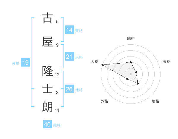 古屋 隆士朗さんを姓名の画数から五運を鑑定