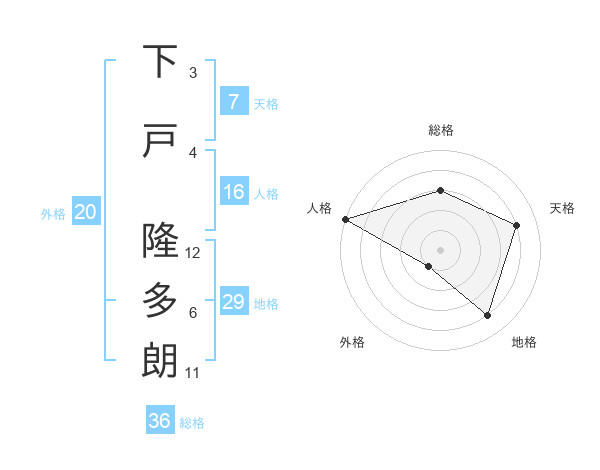 下戸 隆多朗さんを姓名の画数から五運を鑑定