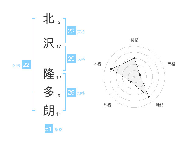 北沢 隆多朗さんを姓名の画数から五運を鑑定