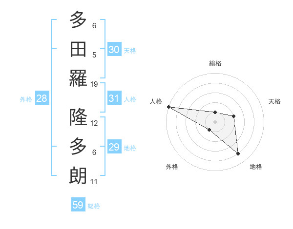 多田羅 隆多朗さんを姓名の画数から五運を鑑定