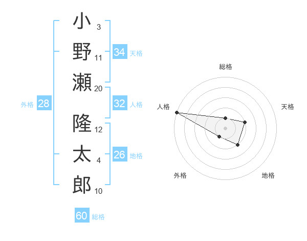 小野瀬 隆太郎さんを姓名の画数から五運を鑑定