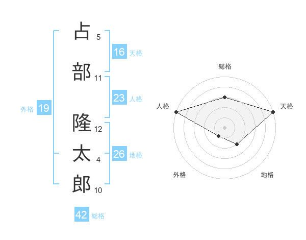 占部 隆太郎さんを姓名の画数から五運を鑑定