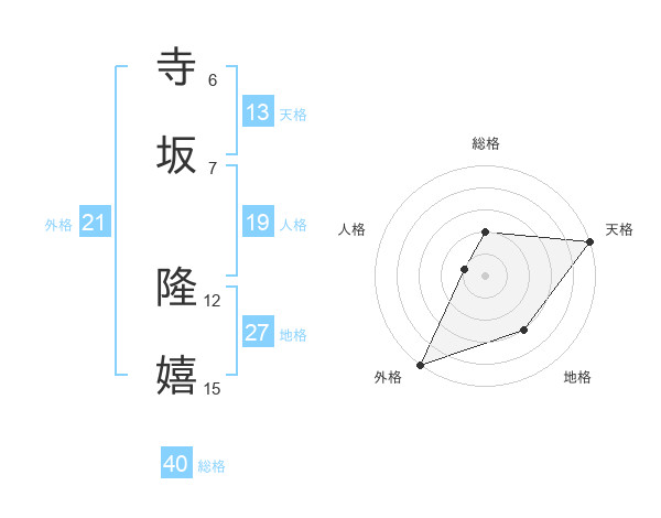 寺坂 隆嬉さんを姓名の画数から五運を鑑定