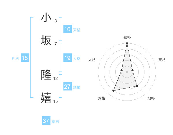 小坂 隆嬉さんの総格は37画の5点!