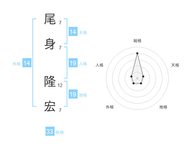 尾身 隆宏さんの天格は14画の1点!