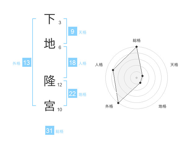 下地 隆宮さんを姓名の画数から五運を鑑定
