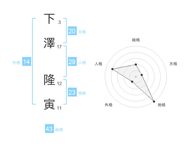 下澤 隆寅さんの総格は43画の2点!