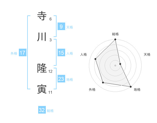 寺川 隆寅さんの総格は32画の5点!