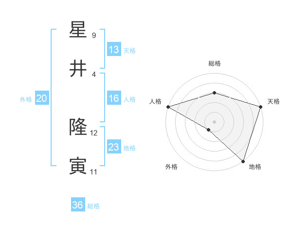 星井 隆寅さんの総格は36画の3点!