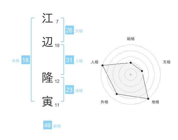 江辺 隆寅さんの総格は49画の2点!