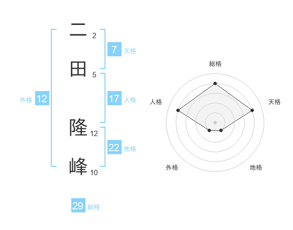 二田 隆峰さんを姓名の画数から五運を鑑定