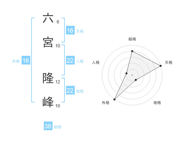 六宮 隆峰さんを姓名の画数から五運を鑑定