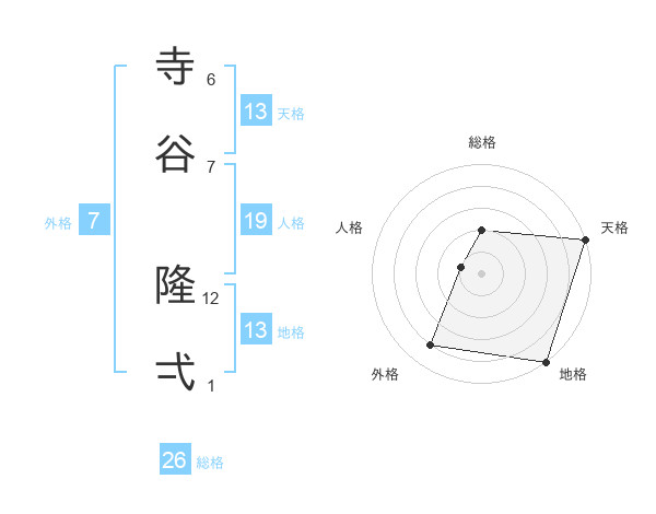寺谷 隆弌さんの天格は13画の5点!