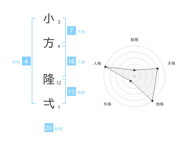 小方 隆弌さんの天格は7画の4点!