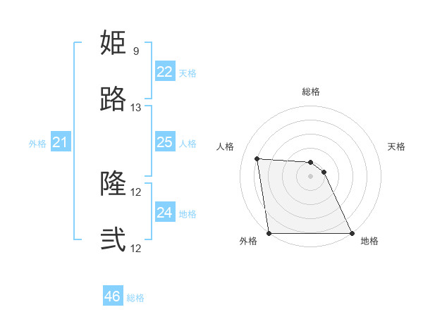 姫路 隆弐さんを姓名の画数から五運を鑑定