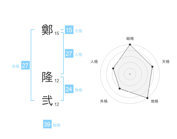 鄭 隆弐さんを姓名の画数から五運を鑑定