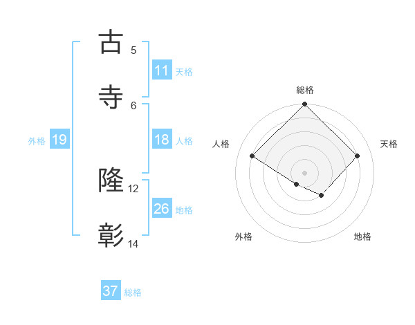 古寺 隆彰さんを姓名の画数から五運を鑑定
