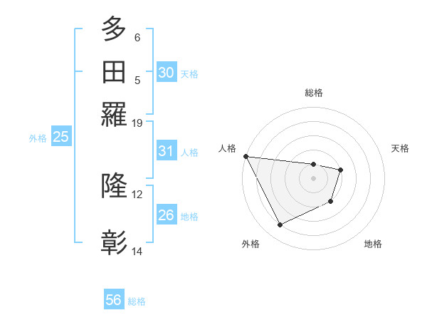 多田羅 隆彰さんを姓名の画数から五運を鑑定