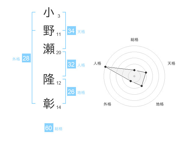 小野瀬 隆彰さんを姓名の画数から五運を鑑定