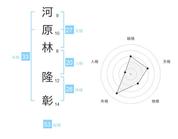 河原林 隆彰さんを姓名の画数から五運を鑑定