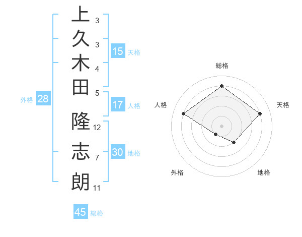 上久木田 隆志朗さんを姓名の画数から五運を鑑定