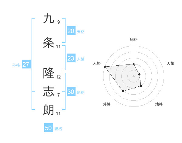 九条 隆志朗さんを姓名の画数から五運を鑑定