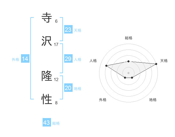 寺沢 隆性さんの総格は43画の2点!