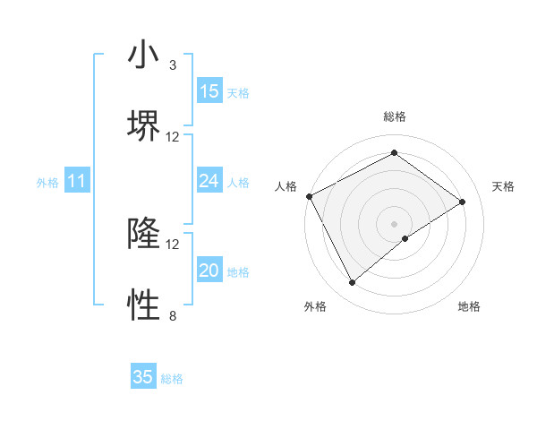 小堺 隆性さんの総格は35画の4点!
