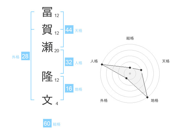 冨賀瀬 隆文さんの総格は60画の1点!