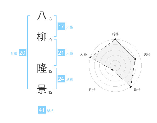 八柳 隆景さんの総格は41画の5点!