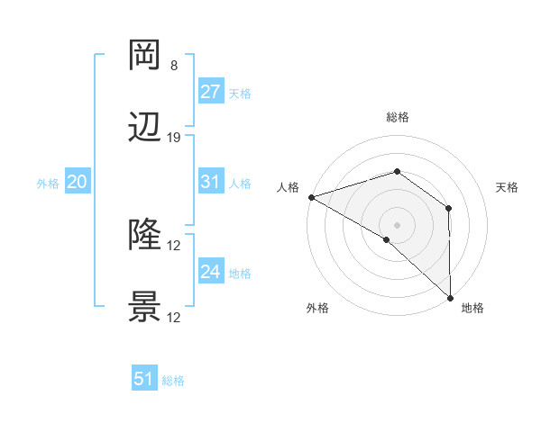 岡辺 隆景さんの総格は51画の3点!