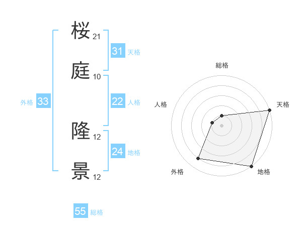 桜庭 隆景さんを姓名の画数から五運を鑑定